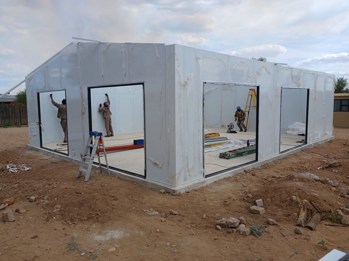 These structures require a concrete slab to be casted to construct your prefabricated shelter of choice. Material is transported to site, upon which assembly takes place. This is a popular mid to long term solution. The prefabricated structure can be disassembled and moved to a new location, but the concrete lab stays intact.